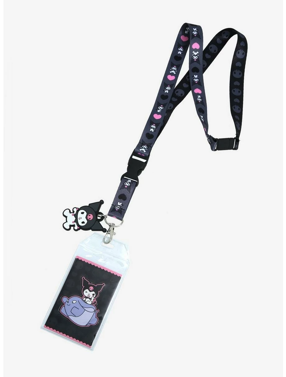 Carry your ID, keycard, and more with you wherever you go with a little help from this Sanrio lanyard! Kuromi appears as the allover print of the lanyard and as the attached silicone charm. Seen flying with Baku on the included art card, the adorable rabbit is the perfect addition for a cute touch to your look.